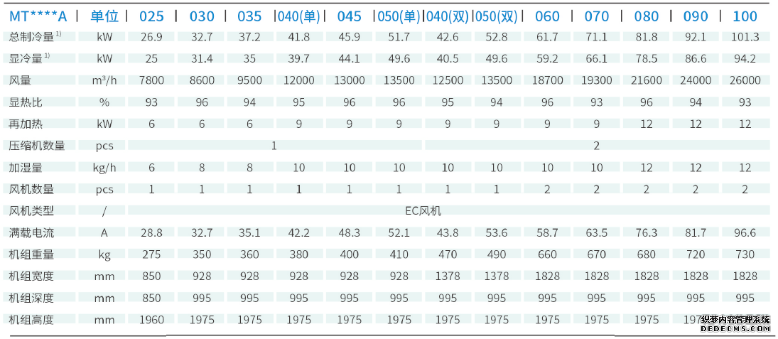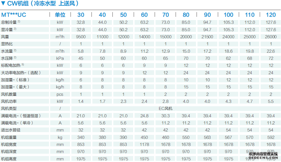 科士達MatrixAirTM系列精密空調提供七種制冷系統(tǒng)選擇:①風冷型(A)、②水冷型(W)、③冷凍水型(C)、④乙二醇經(jīng)濟運行型(G)、⑤風冷雙冷源型(D)、⑥水冷雙冷源型(E)、⑦雙冷凍水型(F);滿足用戶不同需求。