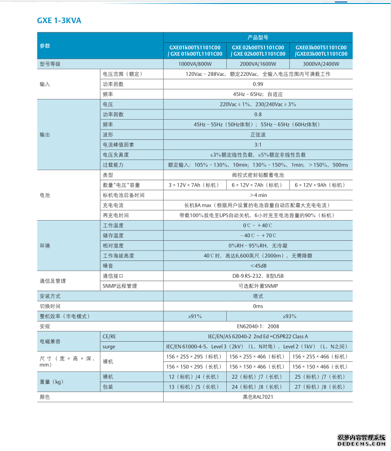 維諦技術(shù)(原艾默生網(wǎng)絡(luò)能源)GXE全系列產(chǎn)品參數(shù):